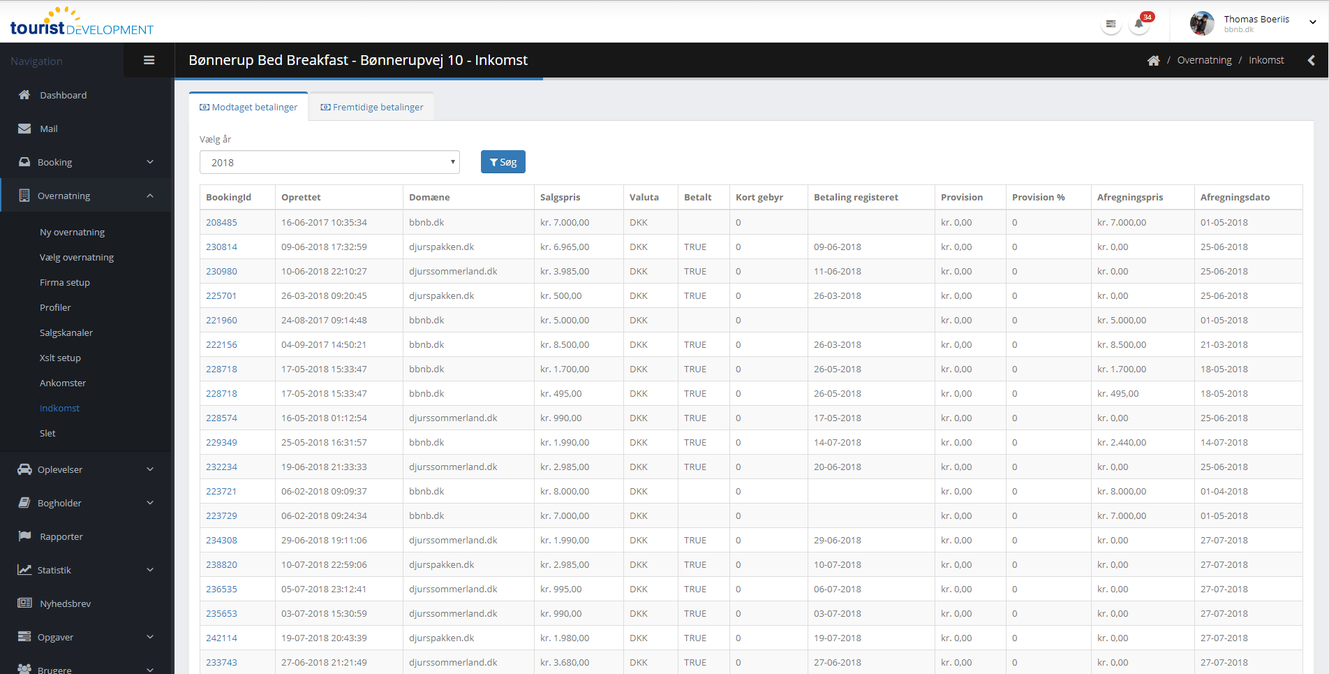 Under fanen fremtidige betalinger, kan du se de bookinger der ligger forud i tiden, samt se salgs priser for de bookinger der kommer til at ske.
