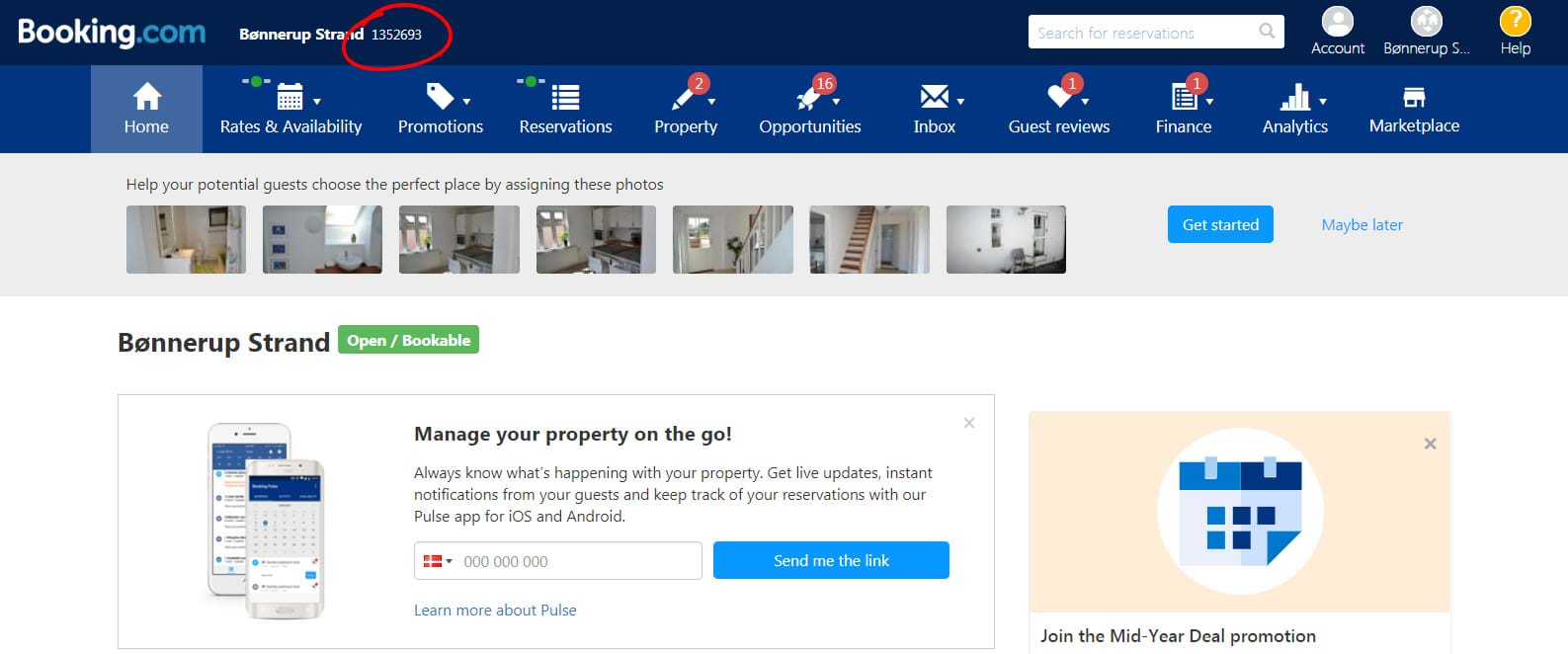 1. Log ind i booking.com´s kontrolpanel