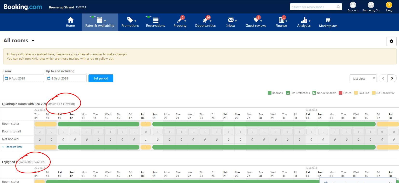 ROOM_ID på dine enheder (Gå under "Priser og tilgænglighed" og vælg kalenderen. Herefter vil du kunne se hvert room id ud fra hver enhed. se eksempel )